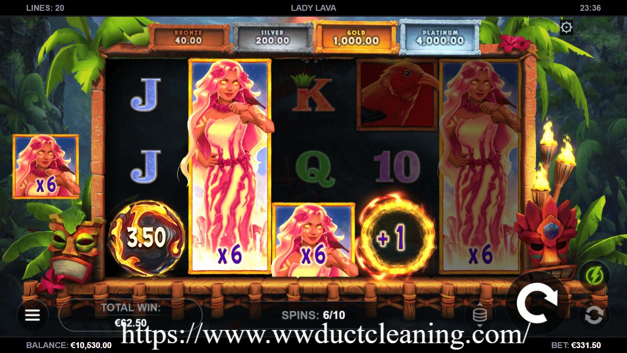 Setiap putaran membawa pemain merasakan kekuatan Lady Lava sambil mengejar kemenangan spektakuler.